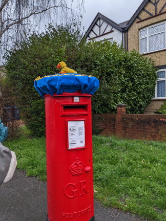 Previous Image Next Image 03 London Area – duck on a post box A random toy duck decorating a post box